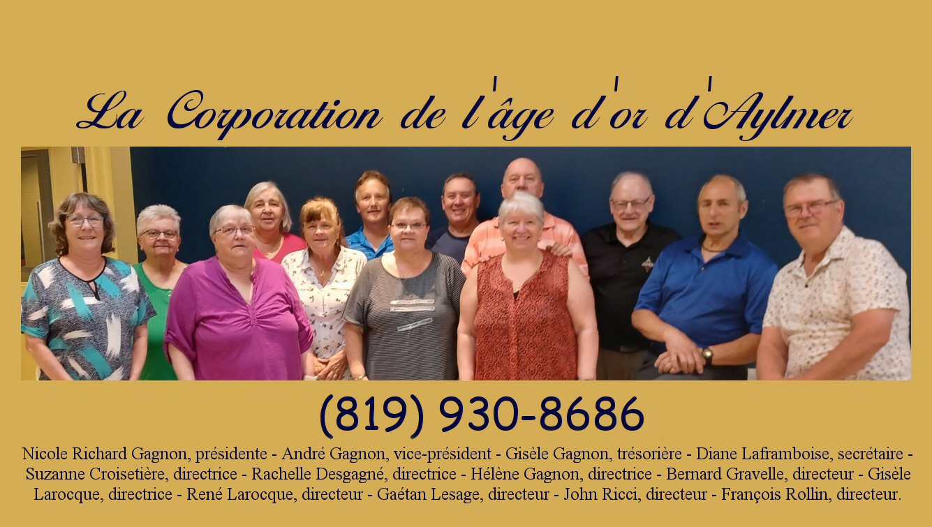 La Corporation de l'âge d'or d'Aylmer est un organisme à but non lucratif qui existe depuis 1983 et dont la mission est de grouper en association les personnes âgées de 50 ans et plus de la ville de Gatineau du secteur d'Aylmer et veiller à leur bien-être et à la sauvegarde de leurs intérêts; d'organiser des services et des activités pour l'épanouissement de la personne âgée et plus particulièrement mettre sur pied des activités récréatives, sportives, sociales, de bienfaisance et autres pour l'enrichissement de l'esprit et le délassement des membres et usagers de la Corporation et de favoriser parmi ses membres et ses usagers des relations sociales et intellectuelles. Le siège social de la Corporation est situé au 30, rue Court, Gatineau, secteur d'Aylmer (Québec),